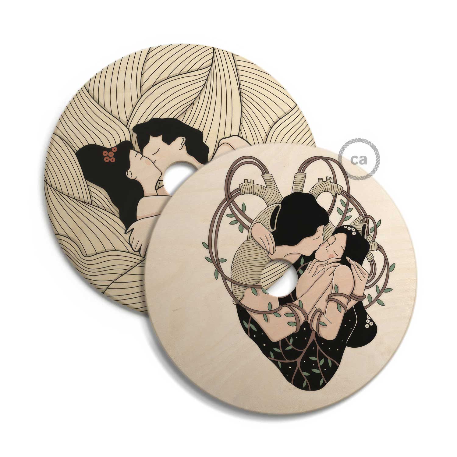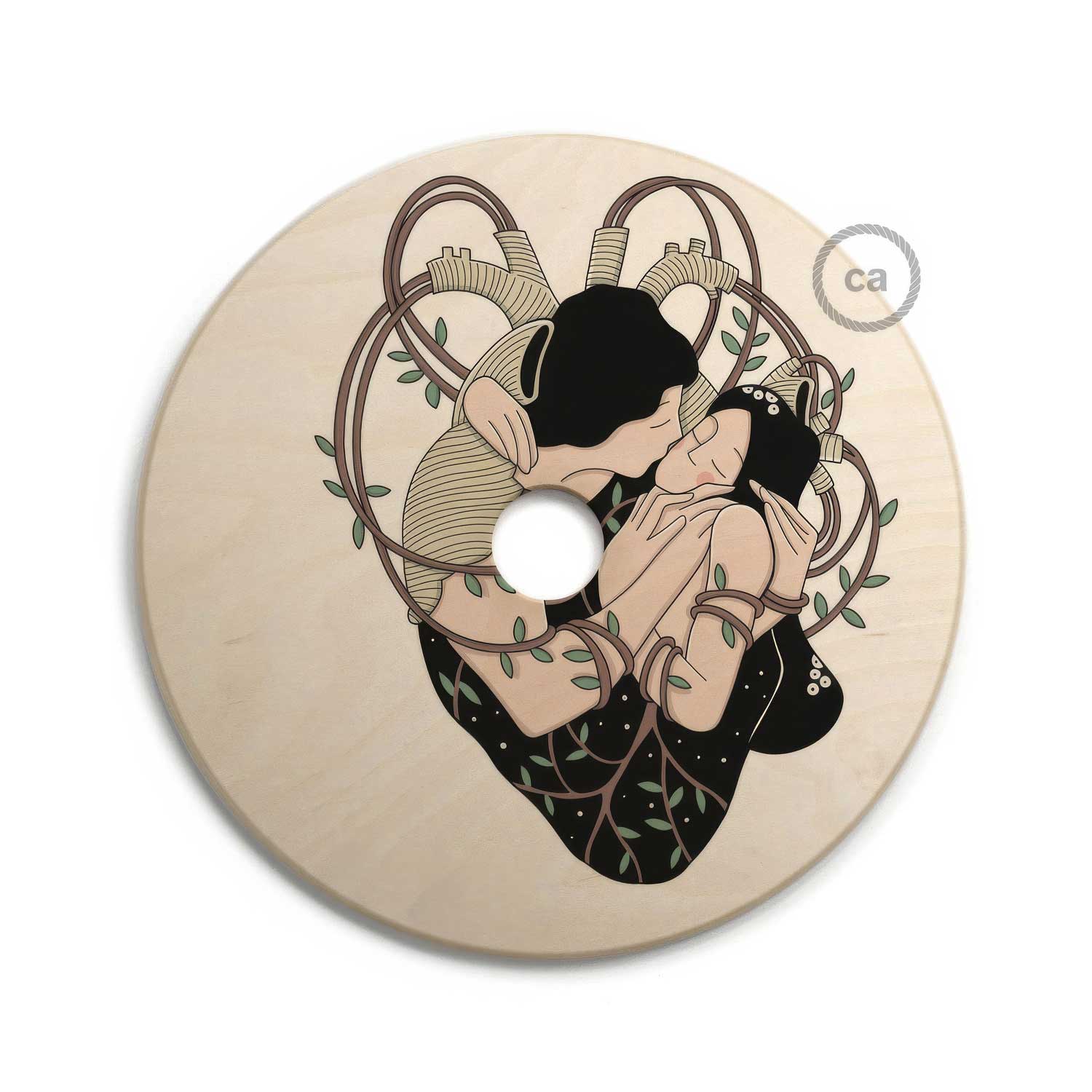 UFO Lampenschirm aus Holz Special Edition Italienische Illustratoren, beidseitig, Durchmesser 33 cm – Carolina Zuniga