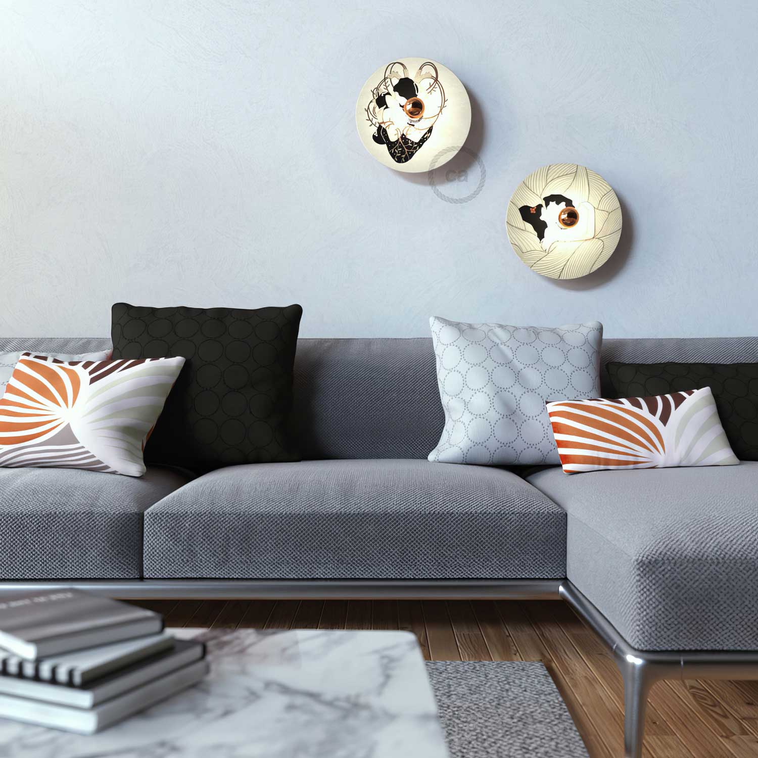 Auf beiden Seiten des Lampenschirms verleiht das Werk jeder Installation Charakter und Einzigartigkeit.